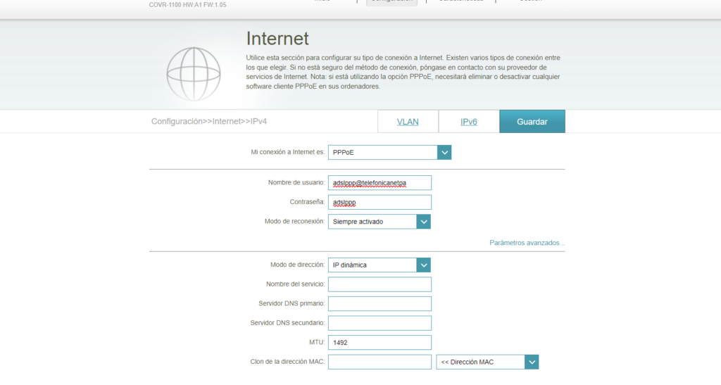 Una vez que hayas iniciado sesión en el panel de configuración, debes buscar la sección que se encarga de la configuración DNS. Esta sección puede tener nombres diferentes como "Configuración de Internet", "Configuración de red" o "DNS".
