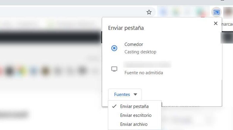 El contenido que estás viendo en Chrome se enviará a tu televisor.