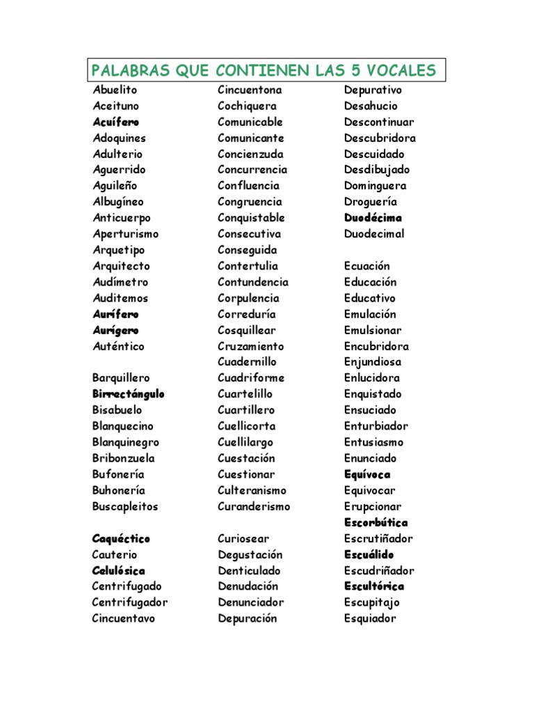 Una palabra con las vocales es una palabra que contiene todas las vocales del alfabeto español: A, E, I, O, U. Estas palabras pueden ser de diferentes longitudes, pero el desafío suele ser encontrar una palabra con un número determinado de letras. En este caso, la pregunta busca una palabra de 5 letras con todas las vocales.
